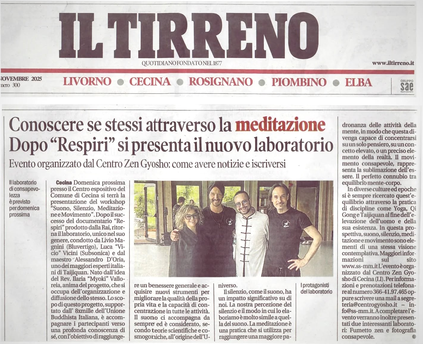 Il workshop Suono, Silenzio, Meditazione e Movimento è ideato ed organizzato dal Centro Zen Gyosho di Cecina, realtà che fa parte dell’Unione Buddhista Italiana (UBI).